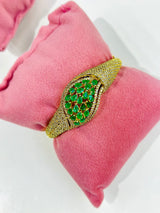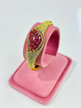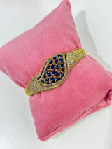 Experience luxury and sophistication with our Freya Designer Handcuff. Imported from Dubai, this handcuff features a unique design adorned with high-quality zirconia and semi-precious stones on a gold-plated base. Elevate your style and make a statement with this exquisite piece.