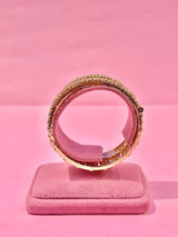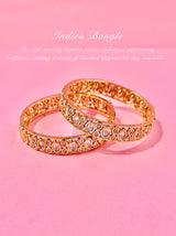 This Kundan bangle is a masterpiece of intricate craftsmanship. The delicate floral motifs, meticulously set with sparkling stones, capture the essence of traditional Indian jewelry. Each piece is a testament to the artistry and skill of the artisans who created it. The rich colors and shimmering stones create a captivating visual feast, adding a touch of royalty and elegance to any ensemble.”