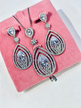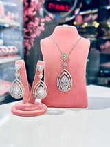 Sparkle and shine with this stunning locket set! The American diamond and shinning zirconia stones make it perfect for party wear. Get ready to turn heads and feel like a total superstar!