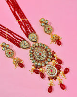 Dazzle in the radiance of our Kundan malla set, meticulously crafted with high-quality beads imported from Dubai