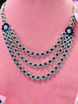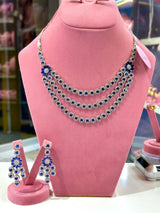 This Quinn Malla Set is a true luxury imported from India. Made with high quality American diamond zircona and sapphire stones, it embodies elegance and sophistication. Experience the opulence of Indian jewelry with this stunning set.