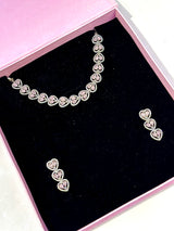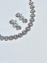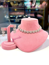 The ROry SEt features high quality American diamond zircons and baby pink stones on a white gold plated base imported from India. Elevate your style with this stunning jewelry set, perfect for any occasion. Made with precision and expertise, this set combines elegance and durability for a timeless addition to your collection.