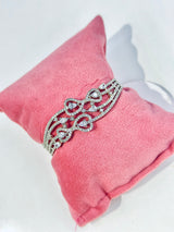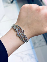 Invest in luxury with our Rose Designer Handcuff. Made with high quality American diamond zirconia stones and rhodium plating, this unique design is imported from Dubai. Experience the elegance and craftsmanship that this handcuff offers, perfect for any special occasion.