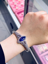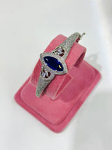 Elevate your style with the Sage Handcuff. Featuring high quality mirco American diamond zircons on a rhodium plated base, this designer handcuff boasts a unique design imported from Dubai. Add a touch of luxury and sophistication to any outfit with this elegant accessory ,